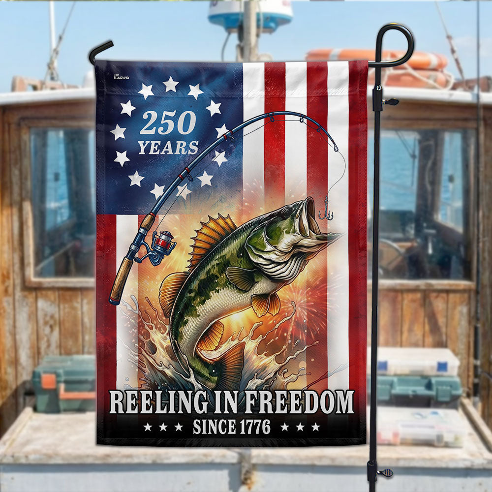 Bass Fish Flag, 250 years Reeling in Freedom US Flag