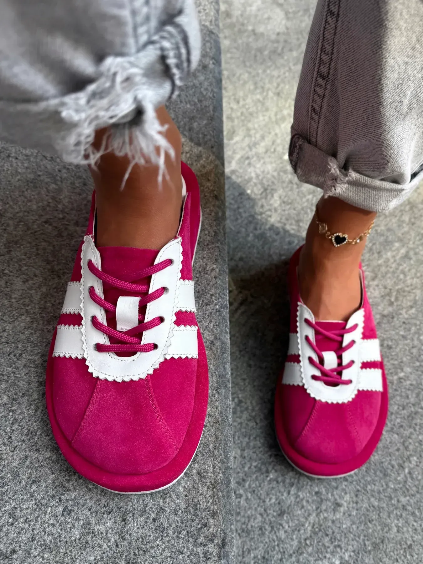 Fuchsia White-Trimmed Mules