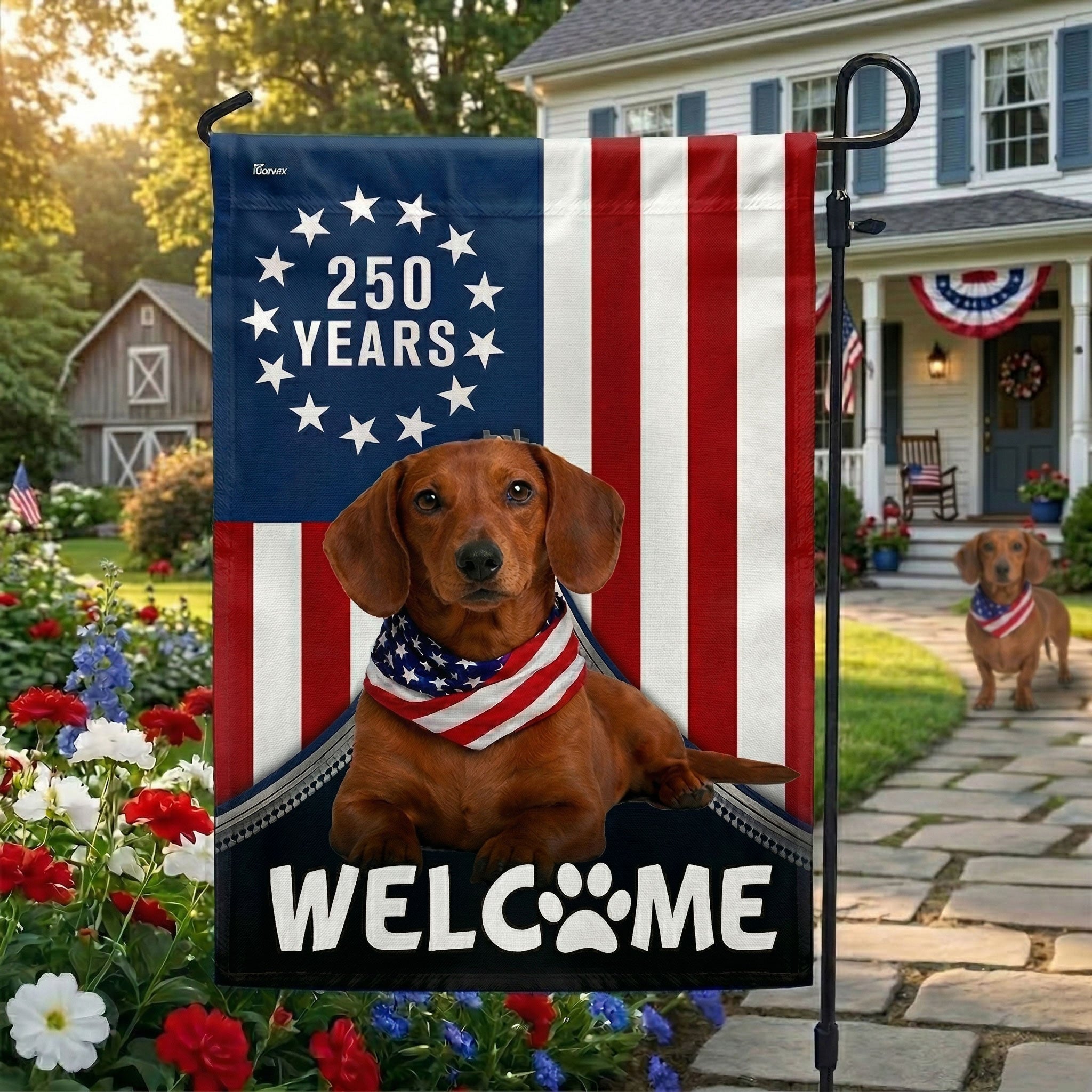 Patriotic Welcome Dog Garden Flag, 250 Years Dachshund Betsy Ross Flag Decor